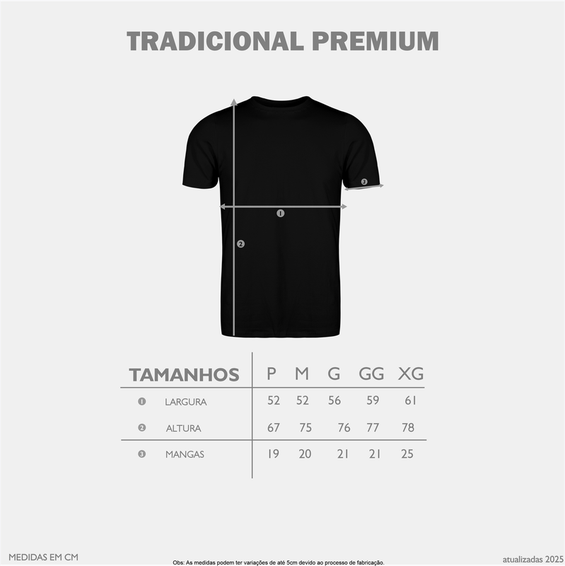 Camiseta fabricada com cortes retos e tecido de meia malha, fio 30.1, penteado, com 100% algodão e gramatura 165 gramas. Essa malha premium unissex, se encaixa perfeitamente em qualquer biotipo, possui gola com reforço, mangas curtas e gola rebatida. Ideal para pessoas que se preocupam com os mÃnimos detalhes.